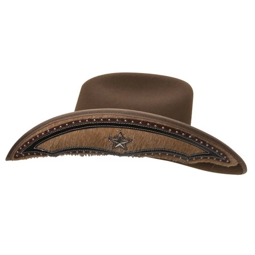 • Hair-On Cowhide Under Brim with Star and Silver Rivets