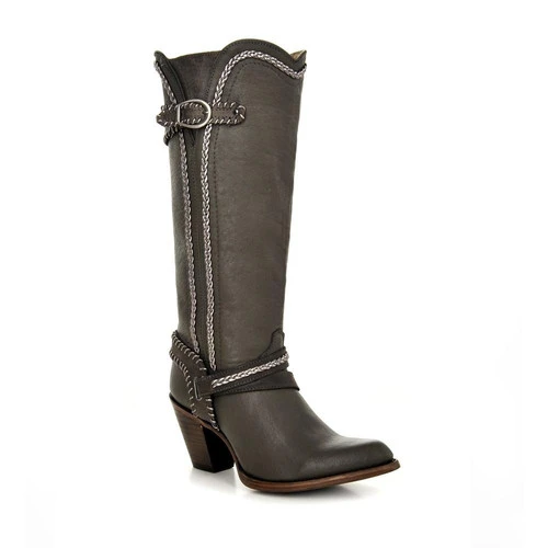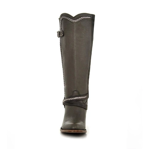 Cuadra Genuine bovine leather boot with braid in contrast, lateral zipper and hand-stitched details in the front straps.