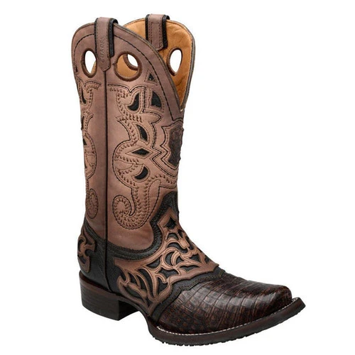 Men’s caiman belly hand-painted western pro rodeo boots with laser-cut details saddle-vamp & shaft.