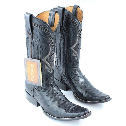 Cuadra brings you these men’s ostrich european toe boots. With beautiful laser cut details & stitching on a leather upper.Â