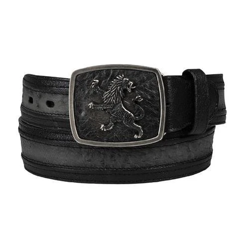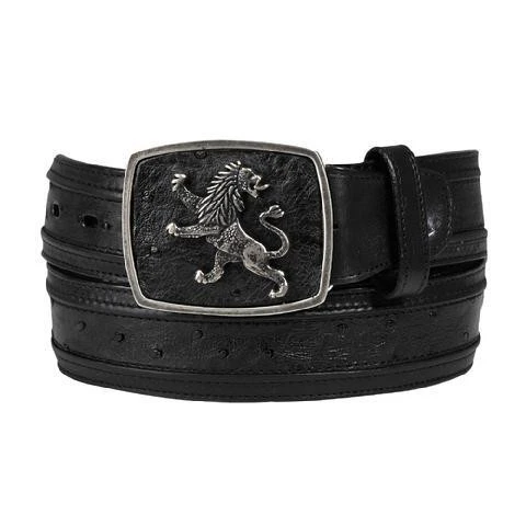 Men’s belt in genuine ostrich leather, hand-woven detailing and lined buckle with lion emblem. Available colors ( Black, Black Cherry, Flame Oryx, Flame Grey.)