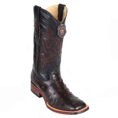 Full quill ostrich cowboy boots by Los Altos Boots feature a fine stitch designs on shaft  a soft leather lining & cushioned insoles for comfort & pull tabs for easier putting on.Â