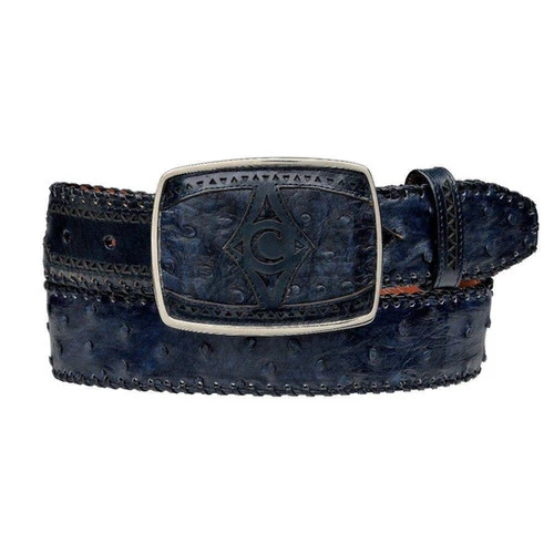 - Cinto de caballero en piel genuina de avestruz con detalles de tejido a mano y hebilla forrada.