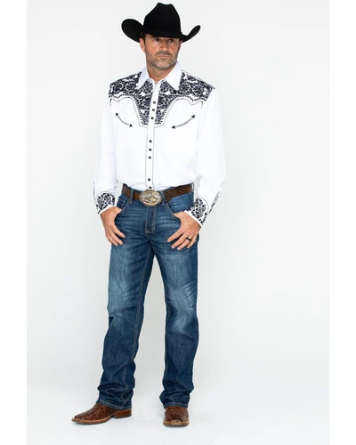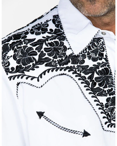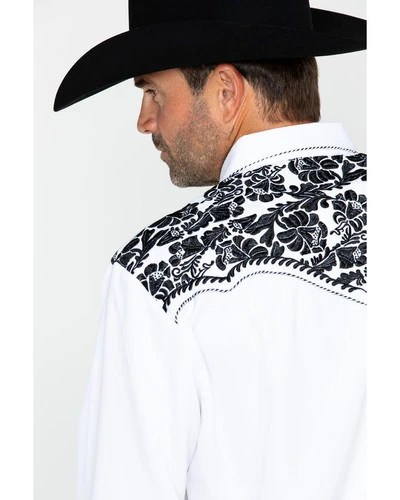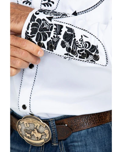 - Floral tooled embroidery on front, back, and cuffs