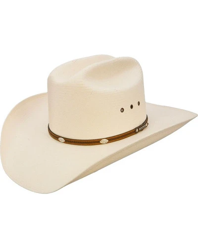 - Brown leather hat band features braided accents with silver-tone engraved conchos