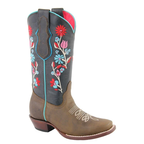 Quincy Women’s Volcano Chocolate Square Toe Cowgirl Boots. Â Features a flower stitched design. Â