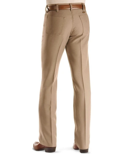 Wrancher dress jeans with stain proof stretch twill look sharp anytime. This Wrancher style regular fit jean is made of 100% texturized woven polyester stretch twill with plenty of pocket room in the front and back. It’s also virtually stain proof thanks to the soil release finish. When you need to dress up your boots, these Wrangler Wrancher jeans are perfect for any occasion!